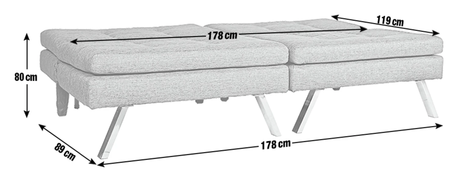 - Sofa size H80, W178, D89cm (Depth as bed 108cm).