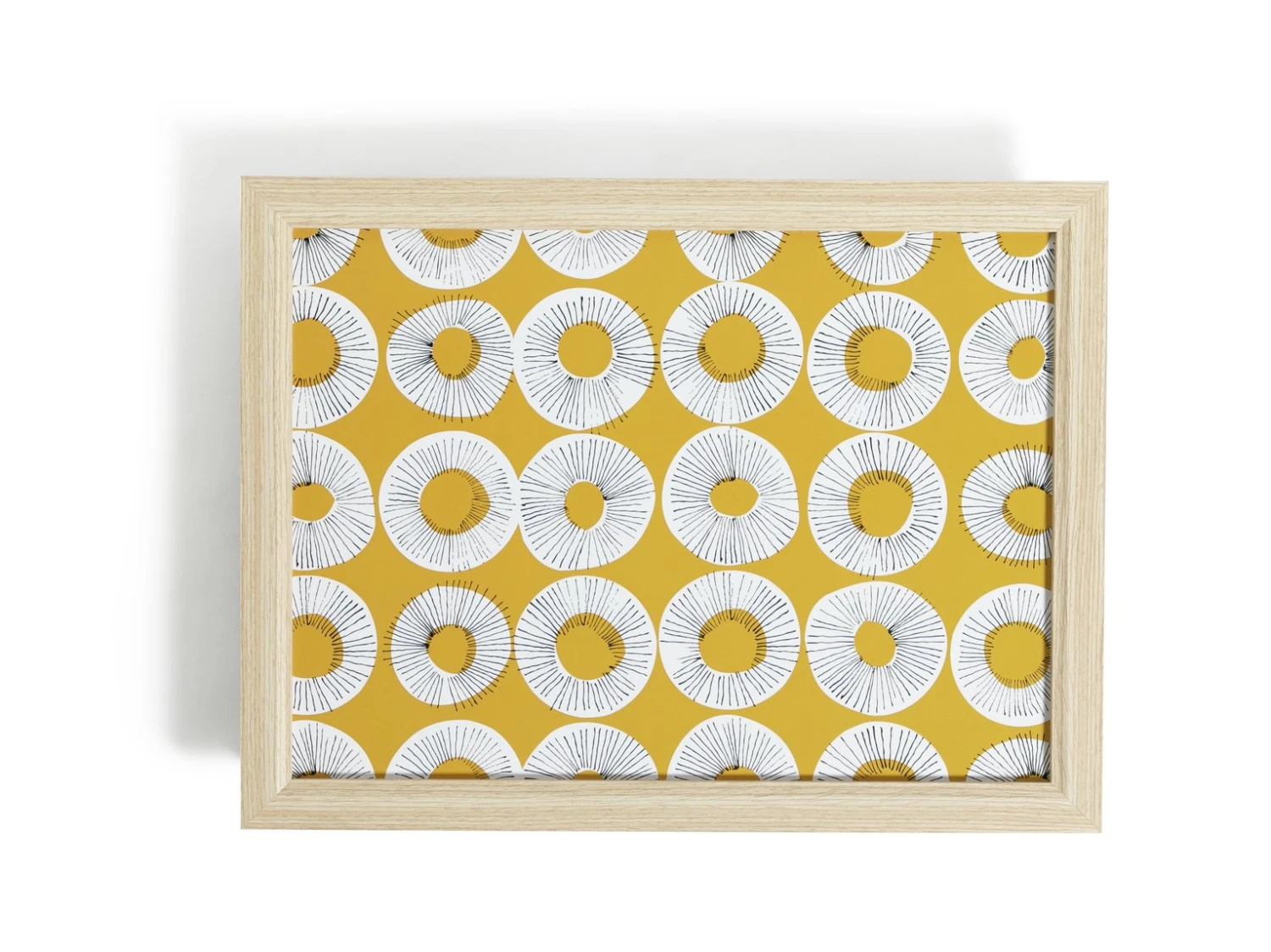 Brekkie in bed? With its cheery yellow graphics, the Evelyn patterned lap tray brightens up the everyday. Made from laminated wood with a comfy, cushioned beanbag underside, it's versatile too. Need a sturdy perch for TV dinners or your work laptop? Look no further. Evelyn's a multi-tasking marvel. Like to mix and match? You'll find the happy go lucky Evelyn print in curtains, cushions and more.