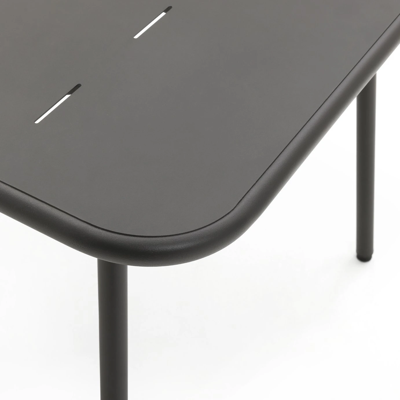 Al fresco dining? It's a seasonal must. Set the scene with our striking 4 seater Indu dining set. The slatted chairs and matching table are crafted from black powder coated steel. Just the right finish to compliment the distinctive linear looks. And the stark dark design brings out the zing in colourful cushions too. Weather looking fine? Get the gang round. This patio set is made for good times.
