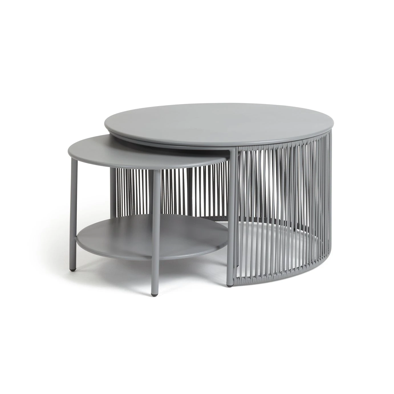 We love clever design, don't you? And this Ipanema coffee table set is clever and showy. The circular grey metal table is contemporary cool. But get this, it comes with a smaller version. A mini me that neatly fits underneath. Call it smart storage. We like to think of it as a lioness protecting its cub. Bring both out when you've a crowd round. Other times keep it safely tucked away. Ideal for a patio. It's eye-catching and practically perfect. Comes fully assembled so that's easy too. Just put it outside and you're good to go.