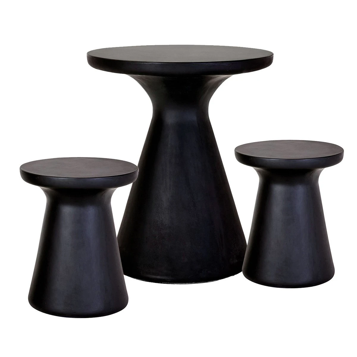 Designed for Habitat, the simple yet striking set comprises a table and 2 stools that can also be used indoors.